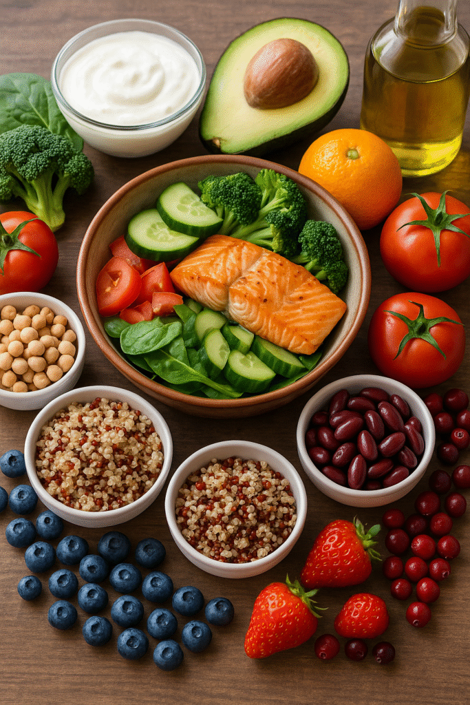 Fibre fra grøntsager, frugt, fuldkorn og bælgfrugter holder tarmen i gang og fodrer de gode tarmbakterier. En sund tarmflora er tæt forbundet med både immunforsvar og humør.